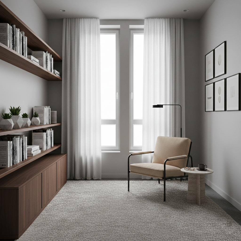 Menos es más. Espacios despejados, paletas monocromáticas y formas simples que promueven la claridad mental y la calma.